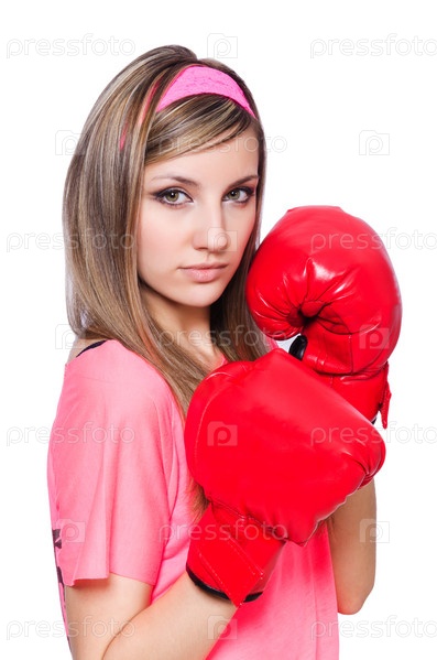 Девушка в боксерских перчатках на белом фоне