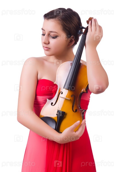 Девушка со скрипкой на белом фоне
