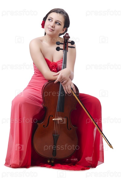 Девушка со скрипкой на белом фоне