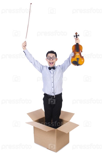 Человек играет на скрипке из коробки