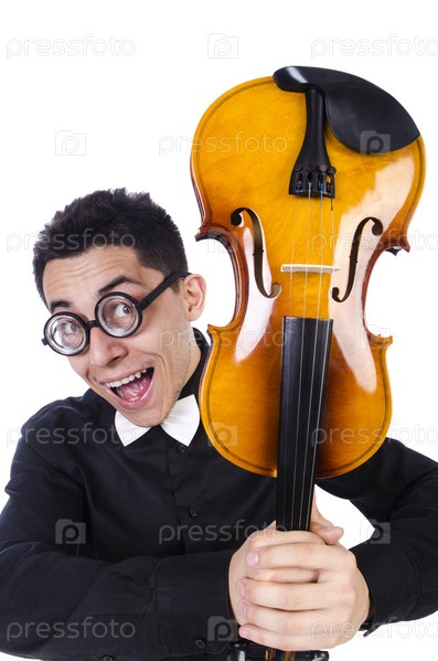 Смешной скрипач на белом фоне