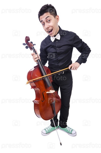 Смешной скрипач на белом фоне