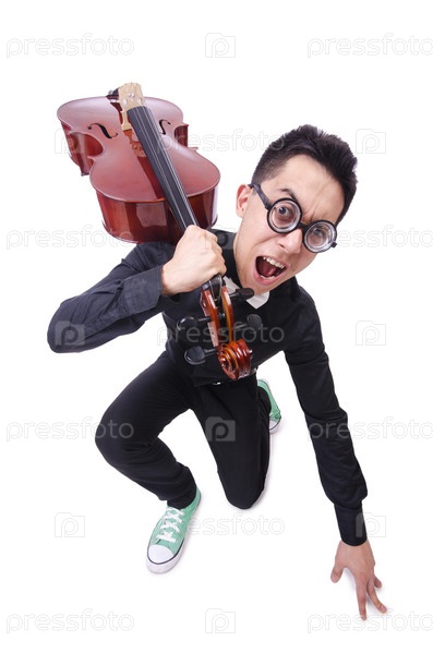 Смешной скрипач на белом фоне
