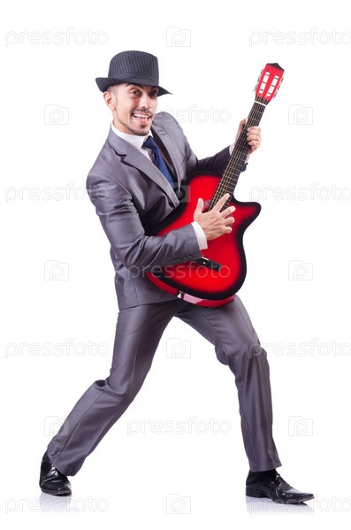 Гитарист, изолированный на белом