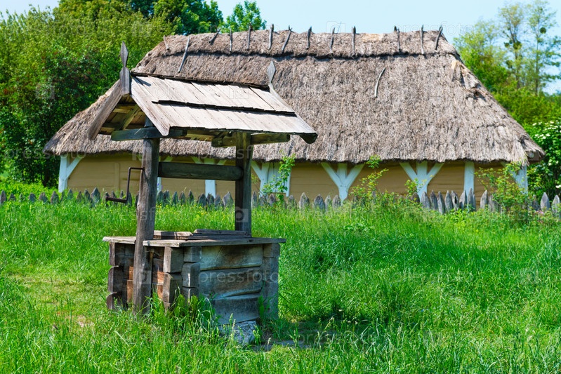 Старый деревенский колодец с деревянной крышей