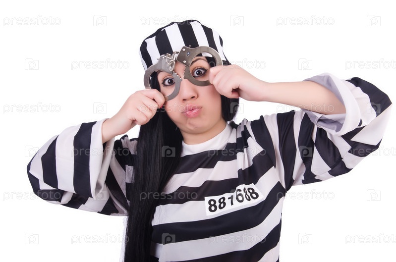 Заключенный в полосатой форме на белом фоне