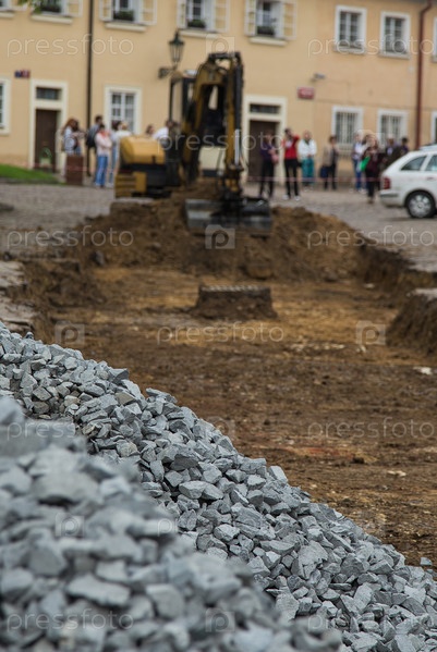 Экскаватор ремонтирует дорогу