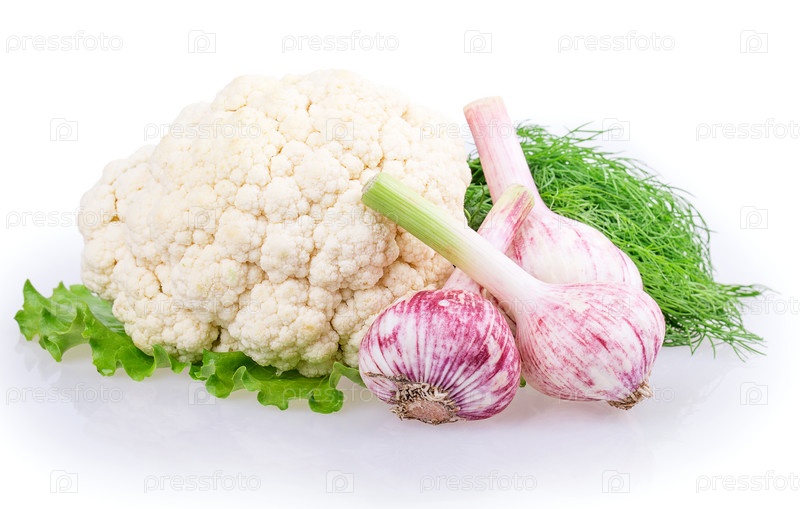 Цветная капуста, зелень и чеснок