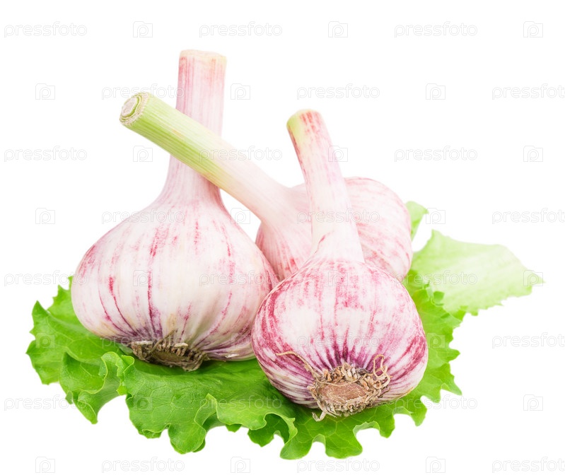 Чеснок на листе салата