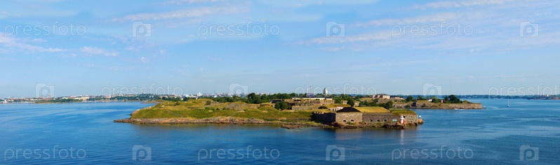 Панорамный вид на крепость Суоменлинна в летний день, Хельсинки, Финляндия