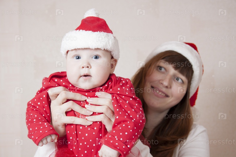 Мать и ребенок празднуют Рождество