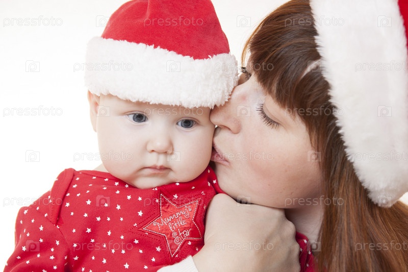 Мать и ребенок празднуют Рождество