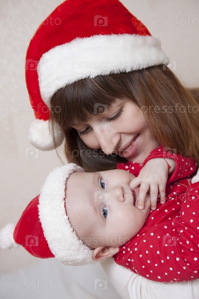 Мать и ребенок празднуют Рождество