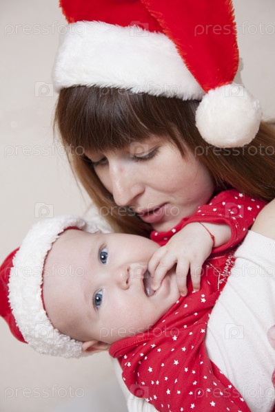 Мать и ребенок празднуют Рождество