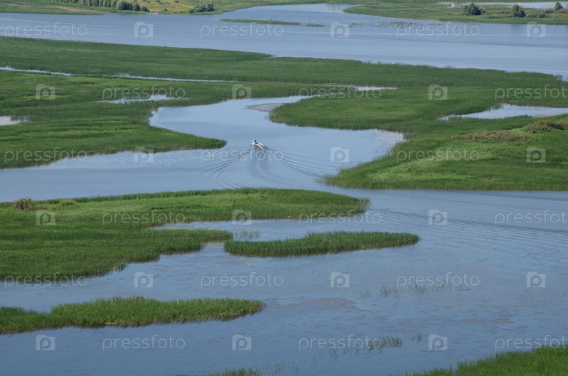 Моторная лодка на охраняемой территории заказника Свияжский