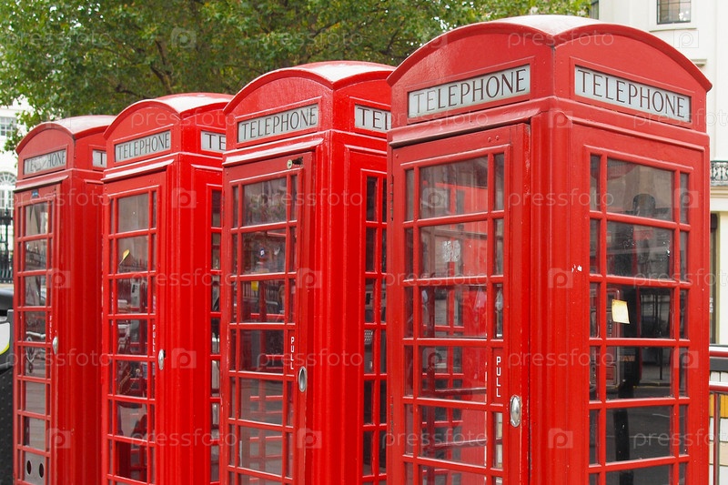 Традиционные красные телефонные будки в Лондоне, Великобритания