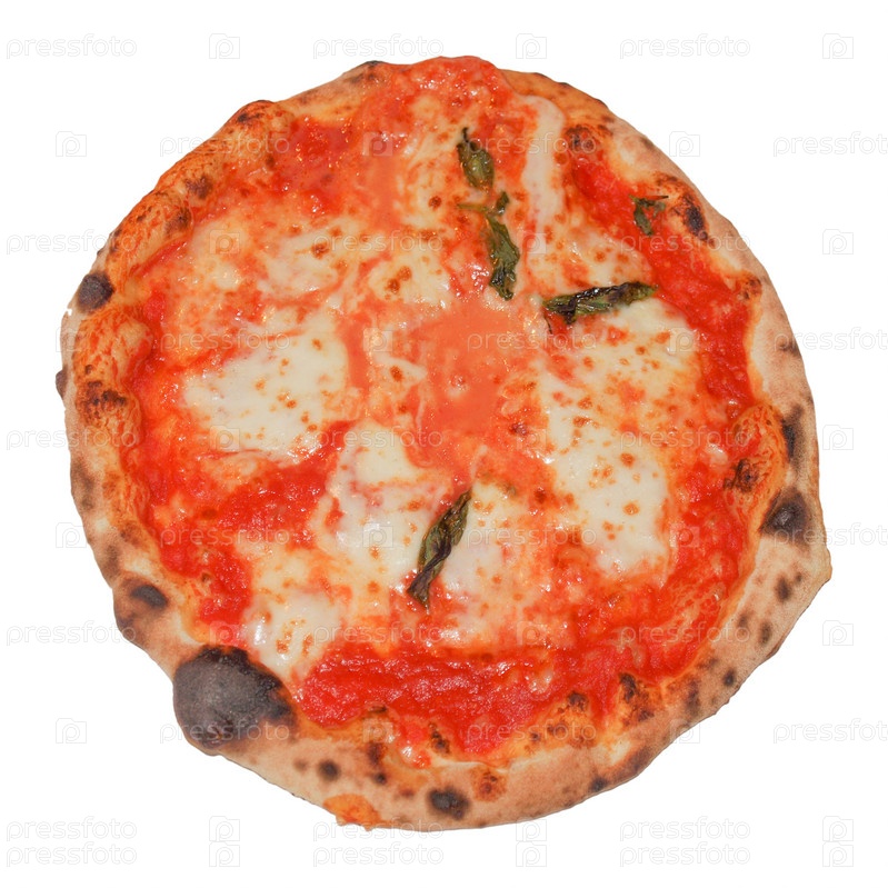 Итальянская пицца Маргарита с помидорами и сыром моцарелла, изолированная на белом фоне