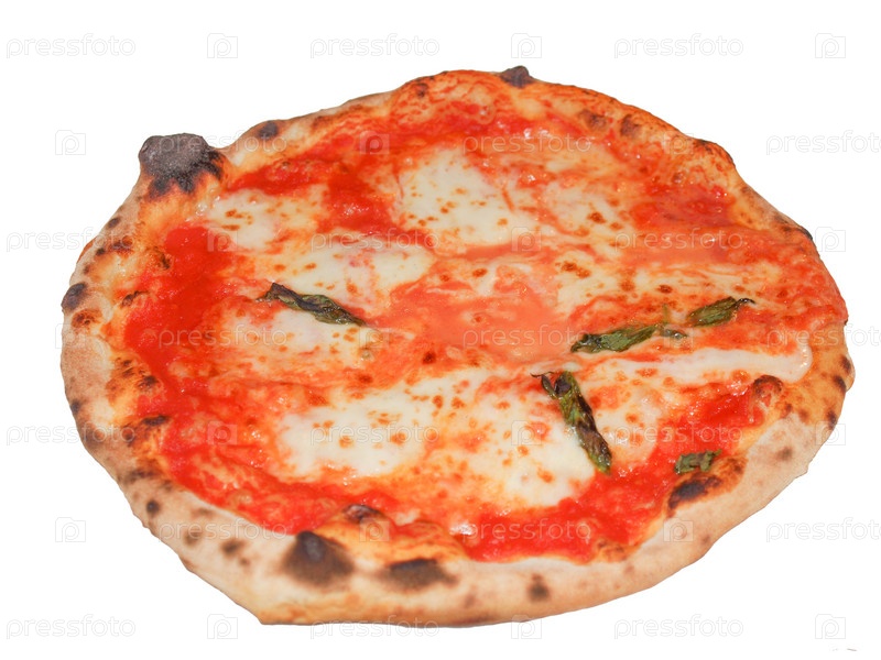 Итальянская пицца Маргарита с помидорами и сыром моцарелла, изолированная на белом фоне