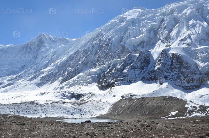 Непал, треккинг в Гималаях. Небольшое высокогорное озеро на высоте 4500 над уровнем моря
