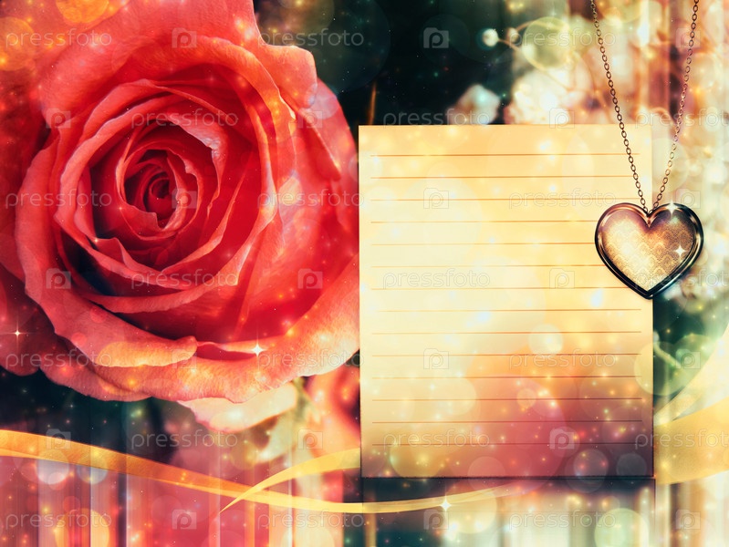 Открытка с розой и подвеской