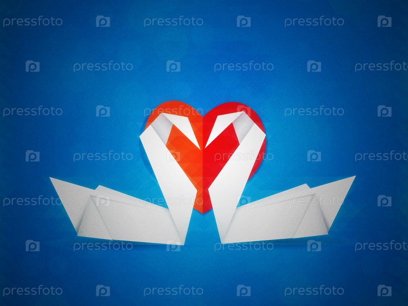 Лебеди и красные сердца