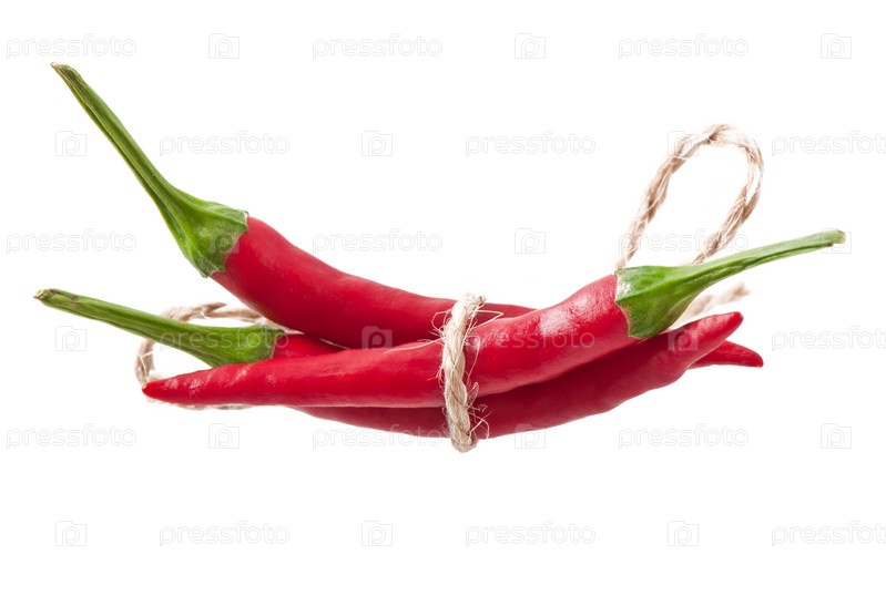 Красный острый перец, связанный веревкой изолированный на белом фоне