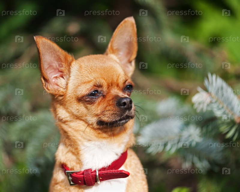 Рыжий чихуахуа в саду