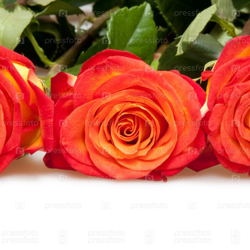 Красные розы, лежащие на полу на белом фоне