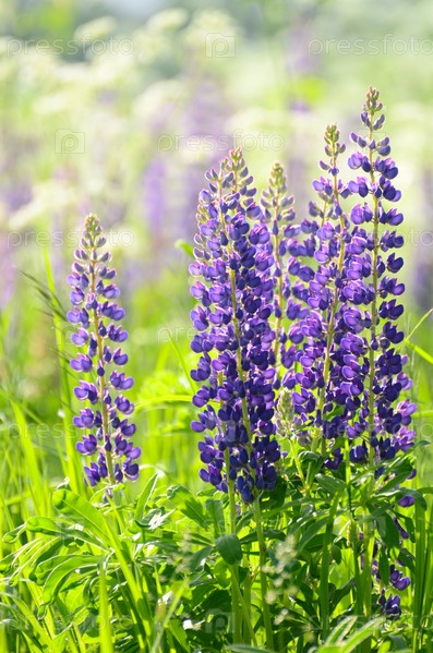 Цветы люпина в поле крупным планом