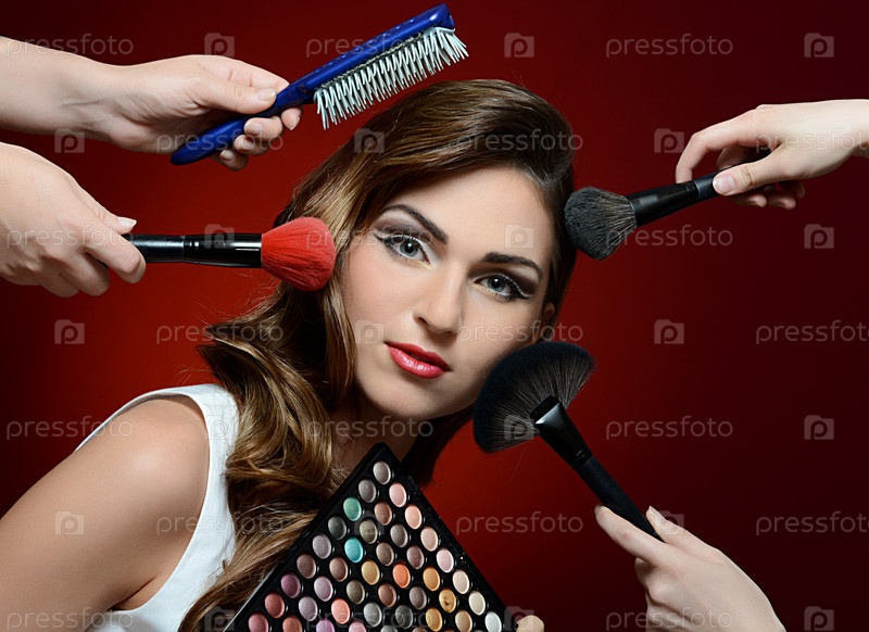 Красивая девушка с кистями для макияжа
