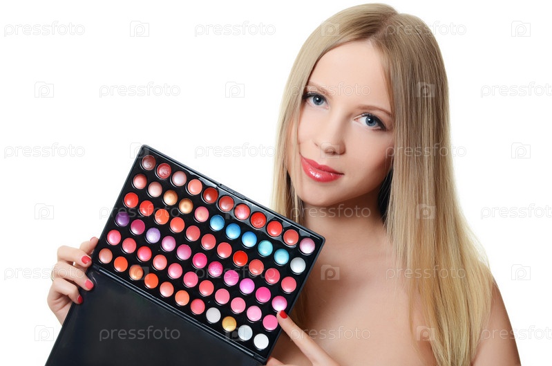 Красивая женщина с палитрой теней
