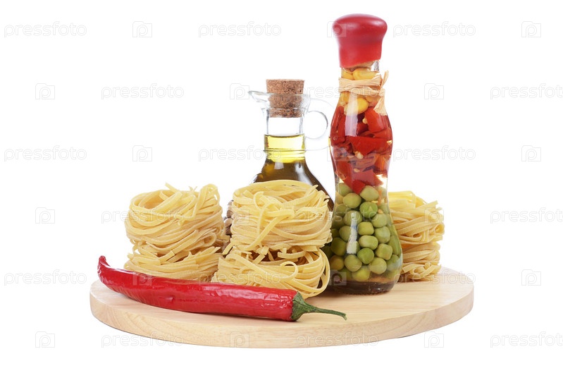 Паста с оливковым маслом, изолированная на белом фоне
