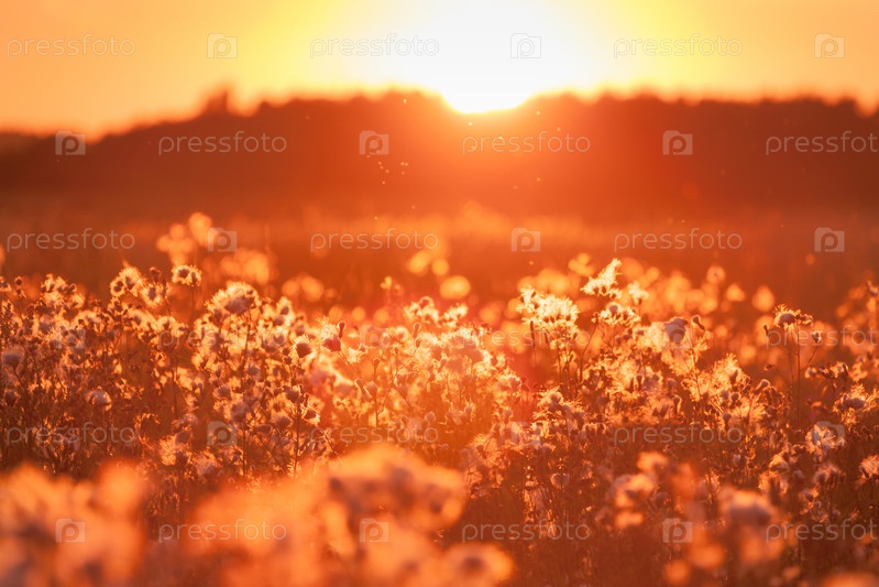Травы на лугу и закат