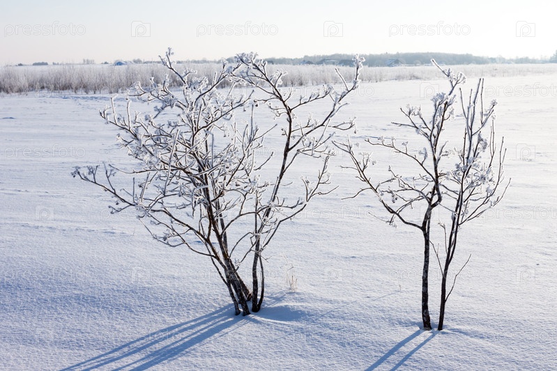 Зимнее дерево в поле с голубым небом