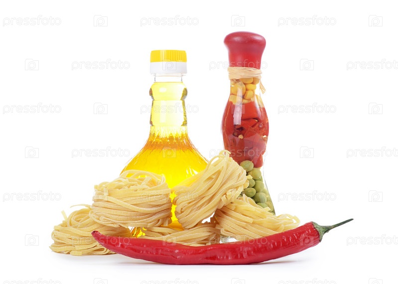 Паста с оливковым маслом, изолированная на белом фоне