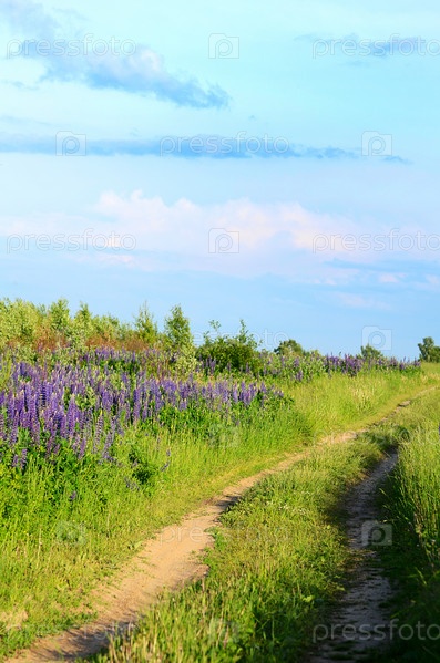 Цветы люпина в поле