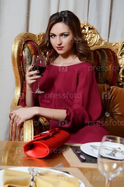 Элегантная женщина с бокалом вина в ресторане
