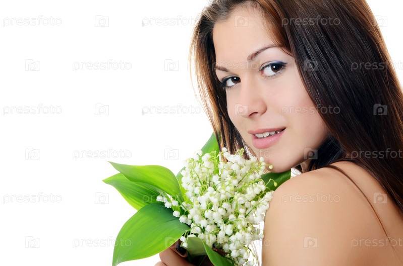 Красивая женщина с букетом ландышей