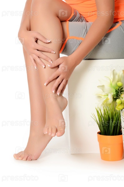 Женские руки и ноги с маникюром и педикюром