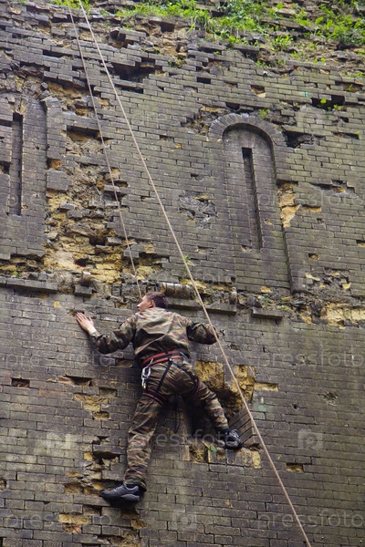 Скалолаз на кирпичной стене