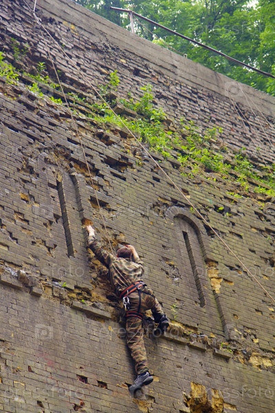 Скалолаз на кирпичной стене