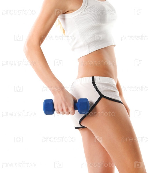 Спортивная женщина с синей гантелью