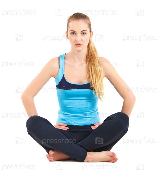 Блондинка занимается йогой