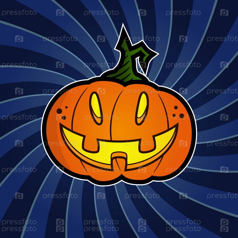 Улыбающаяся хэллоуинская тыква на темно-синем полосатом фоне