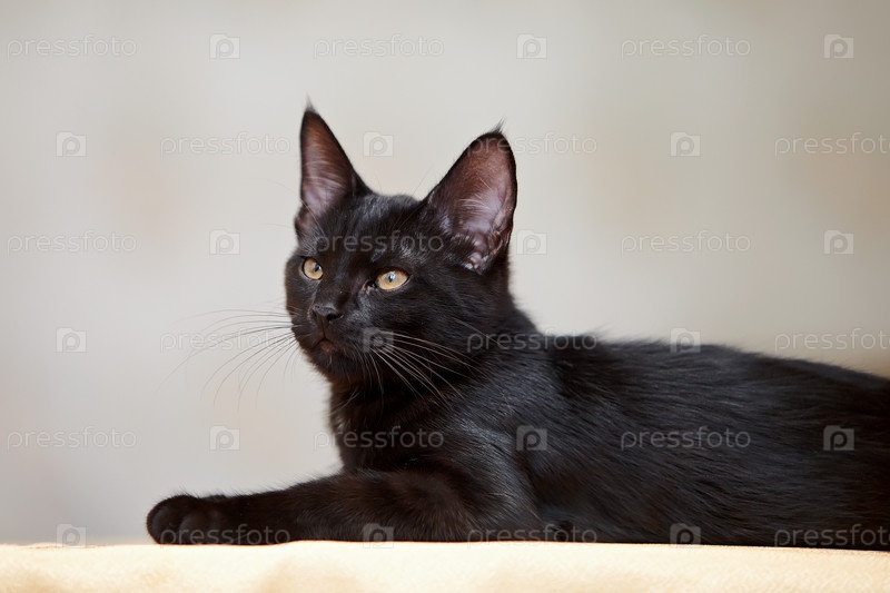 Черный котенок лежит