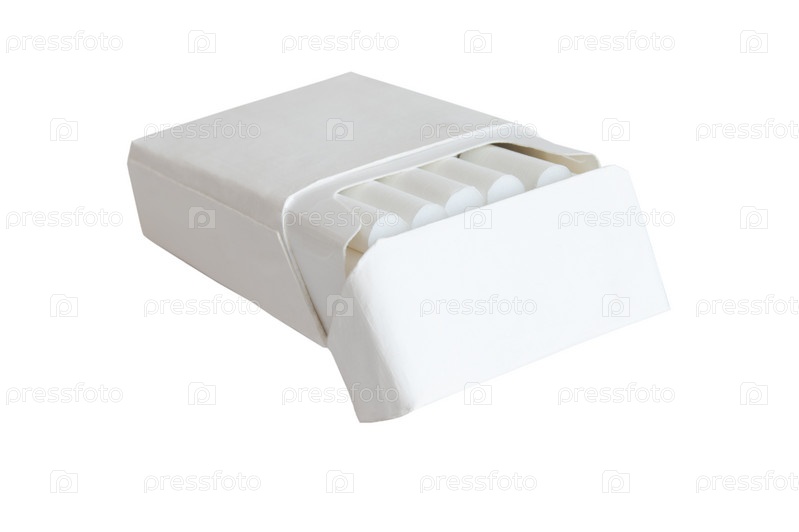 Пачка сигарет с булыми фильтрами, изолированная на белом