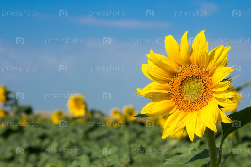 Красивые подсолнухи на фоне голубого неба