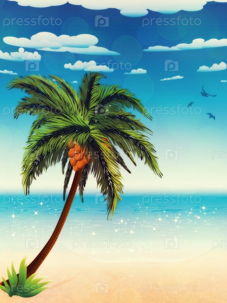 Летний пляж и пальмы