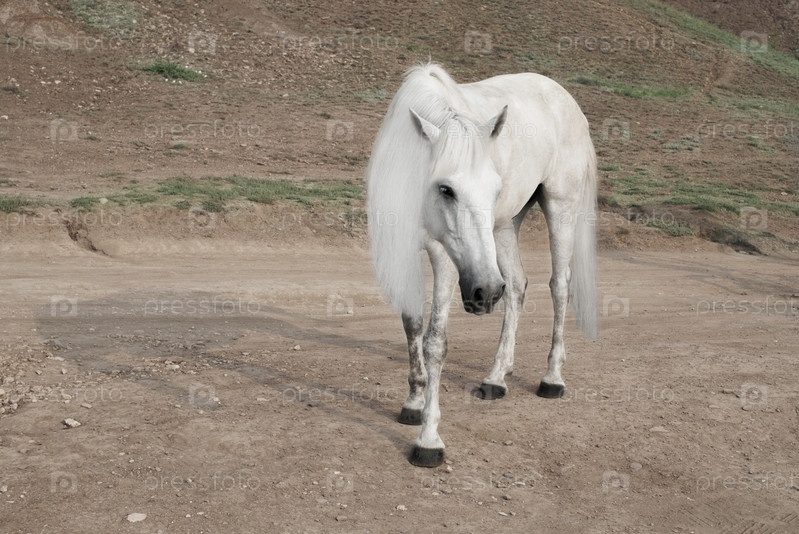 Белая лошадь с красивой гривой