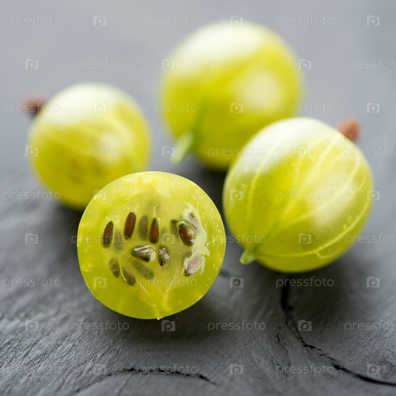 Зеленый крыжовник на черных деревянных досках